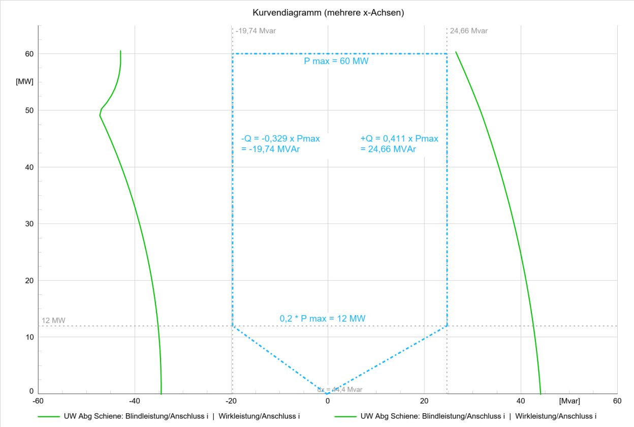 Die Blindleistungssimulationen gemäß TOR werden als Teil der Einreichplanung bzw. spätestens als Konformitätsnachweis an das EVU erstellt um die Einhaltung der TOR-Blindleistungsvorgaben nachzuweisen. Dabei werden sogenannte Hüllkurven berechnet, die außerhalb der TOR-Blindleistungskennlinien liegen müssen.Die Simulation berücksichtigt alle Leistungs- und Strom-Regelkreise der Erzeugungseinheiten wie Generator oder Wechselrichter sowie Gesamtanlagenregler cos-phi-Regler (Anlagenregler) ...