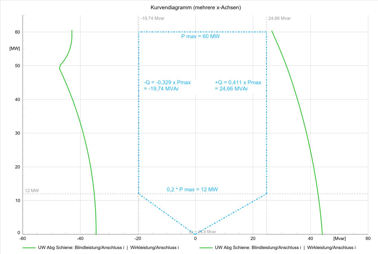 Die Blindleistungssimulationen gemäß TOR werden als Teil der Einreichplanung bzw. spätestens als Konformitätsnachweis an das EVU erstellt um die Einhaltung der TOR-Blindleistungsvorgaben nachzuweisen. Dabei werden sogenannte Hüllkurven berechnet, die außerhalb der TOR-Blindleistungskennlinien liegen müssen.